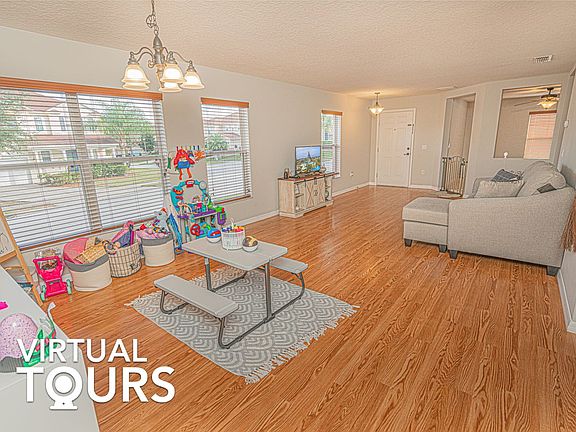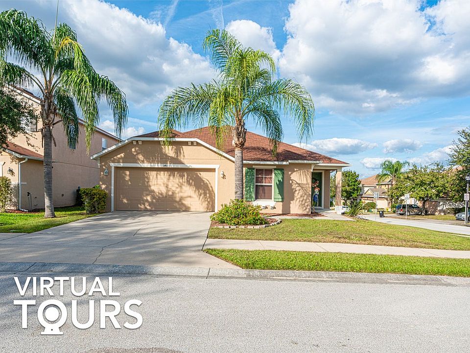Every REX home comes with a 30-day buyback guarantee. Terms and conditions apply. Traditional showings are still welcome! Buyers can view home in person while practicing social distancing or join a live video call with an agent and walk through the home. Wonderful 3 bedroom, 2 bathroom home with 1,950 square feet in Davenport! Fantastic highlights include a spacious living room, upgraded eat-in kitchen, and back deck great for entertaining. Highly desirable corner lot showcases a huge front-facing living room with wood flooring, large windows, and plenty of multi-use options. Adjacent den can easily be converted to a 4th bedroom. The updated eat-in kitchen is light and bright, featuring rich wood cabinetry, pantry, stainless steel appliances, and center island with breakfast bar that overlooks the family room. The casual dining area has a modern chandelier and sliding glass door access to the back deck. Family room features carpet flooring and built-in alcove, perfect for an entertainment center and additional storage. All three bedrooms are well-appointed and include carpet flooring, ceiling fans, and abundant closet space. Tranquil master suite has great space and highlights a fantastic walk-in closet and an en-suite bathroom with extra-wide vanity, tile flooring, and shower/tub combo. Enjoy endless hours outdoors enjoying the lush backyard with a large wood deck, great weekend BBQs! Just minutes away from the Champions Gate area with wonderful shopping and recreation. Outside yard maintenance is done by the H.O.A! Don't miss out!