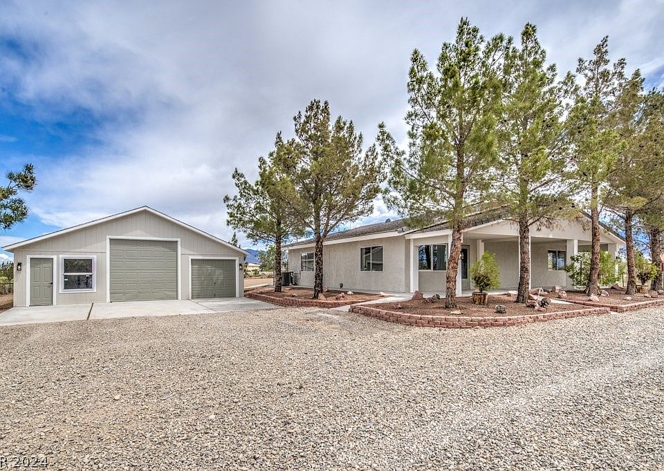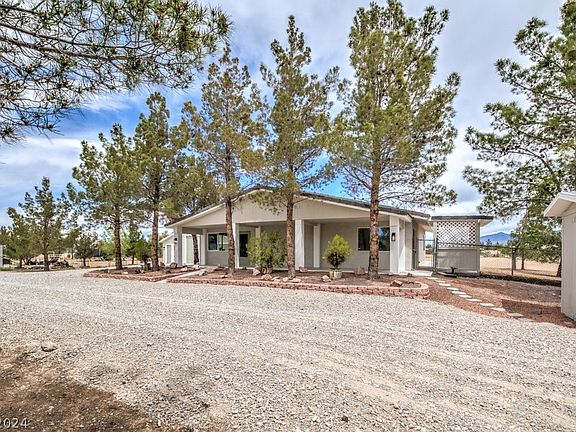 *** ONE OF THE KIND *** FULLY FENCED 1.37 ACRE LOT WITH MATURE PINE TREES AND RV GARAGE *** HOME IS BUILD LIKE NO OTHER PROPERTY IN THE VALLEY - A SOLID approx. 7" CONCRETE WALLS *** A VERY WELL INSULATED HOME - KEEPS YOUR BILLS LOW *** NOW A 3 BEDROOM - PONY WALL /DOOR SHALL BE REINSTALLED *** UPGRADED CABINETS, NEW QUARTZ COUNTERTOPS, NEW SS KITCHEN APPLIANCE PACKAGE, NEW LUXURY VINYL IN ALL TRAFFIC AREAS, NEW UPGRADED CARPET & PAD, NEW FAUSETS, NEW SINKS, NEW PREMIUM EXTERIOR PAINT, NEW PREMIUM INTERIOR PAINT , NEW INTERIOR/EXTERIOR LIGHT FIXTURES. SPACIOUS KITCHEN WITH PLENTY OF CABINET SPACE. OPEN AND AIRY HOUSE FLOOR PLAN WITH A LOT OF NATURAL LIGHT! *** HUGE BACKYARD WITH POSSIBLE BOAT/RV PARKING. *** IS JUST 45 MINUTES FROM LAS VEGAS AND DON’T HAVE TO GO FAR FOR ENTERTAINMENT. VALLEY HAS 3 WINERIES, 3 GOLF COURSES, GAMING, ENDLESS TRAILS FOR HIKING AND BIKING. *** A MUST SEE HOME! ***