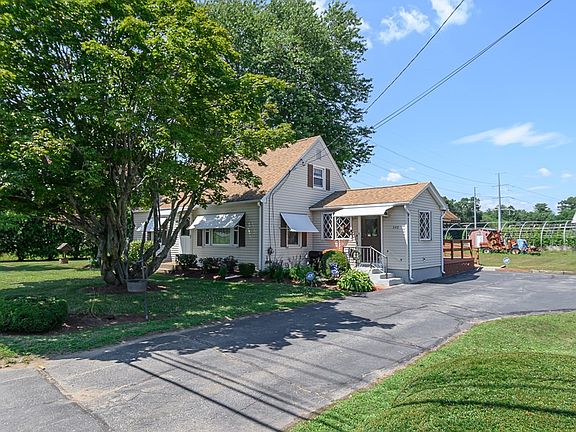 Adorable, expandable 5 room Cape residential home in Business/Agricultural zone allowing many uses. 1328 SF finished area offers one floor living with a generous country kitchen/dining area/family room combination updated with extra built-in cabinets, serving counters, breakfast bar with wide counter, custom hutch/desk, gas cooking and sliders to an oversized deck with custom electric retractable awning. The main level has a front living room with hardwood under the carpet, 2 bedrooms and a full bath. Upstairs has expansive attic space with plenty of room to build bedrooms and add a bath etc, as desired. Attic had been used as living area even though it was never fully finished living square footage. The lower level has laundry, workshop and storage areas as well as built in cabinets & gas line hook up for a summer kitchen. Replacement roof (2009 APO), vinyl siding and thermopane windows all help with energy efficiency. Super convenient location near all town amenities. Make it yours!