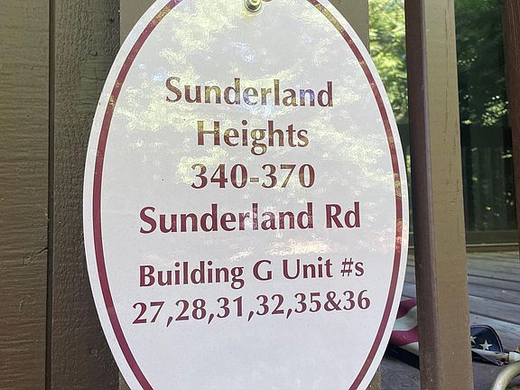 First floor, two bedrooms, two bathrooms condo in Sunderland Heights complex. This unit has been recently painted; Updated flooring in living & dining room; recently renovated bathrooms and kitchen; Gas heat, window a/c, laundry hook-ups; Outdoor pool area; deeded parking for one vehicle but plenty of guest parking; NO pets & smoking. Minimum credit score of 700 or higher. Property owner is also a real estate broker. Available to show Tuesday or Wednesday evening - email owner for an appointment. 12 month lease - First and security due upon signing lease;