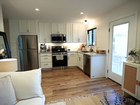 Steps to MoonlightBeach. Fully furnished in contemporary coastal style. Brand New 1 Bedroom 1 Bath gem just two blocks to Moonlight Beach! Perfect location! Two blocks to Moonlight Beach and 3 blocks to Stonesteps Beach, this sparkling new 1 BR/1 BA is walking distance to downtown Encinitas, train station, restaurants and shopping. Large kitchen with expansive quartzite counters and stainless steel appliances. Open floor plan perfect for entertaining, private gated front through garden with security gate at the street. private yard and storage shed. Lease term negotiable. Brand new custom finishes including: -Wood grain LVP flooring throughout -Stainless steel refrigerator, dishwasher, gas range -Hansgrohe fixtures -Fujitsu air conditioner/heater -Washer/dryer in unit -Modern tiled shower/tub with glass door -Large closets -Whole home water filtration system -Gardener and trash pickup included -private yard -No smoking/no pets This apartment is available May 1st, possibly sooner. Landlord pays for Gardner and Trash. Tennant pays all other utilities. No pets.