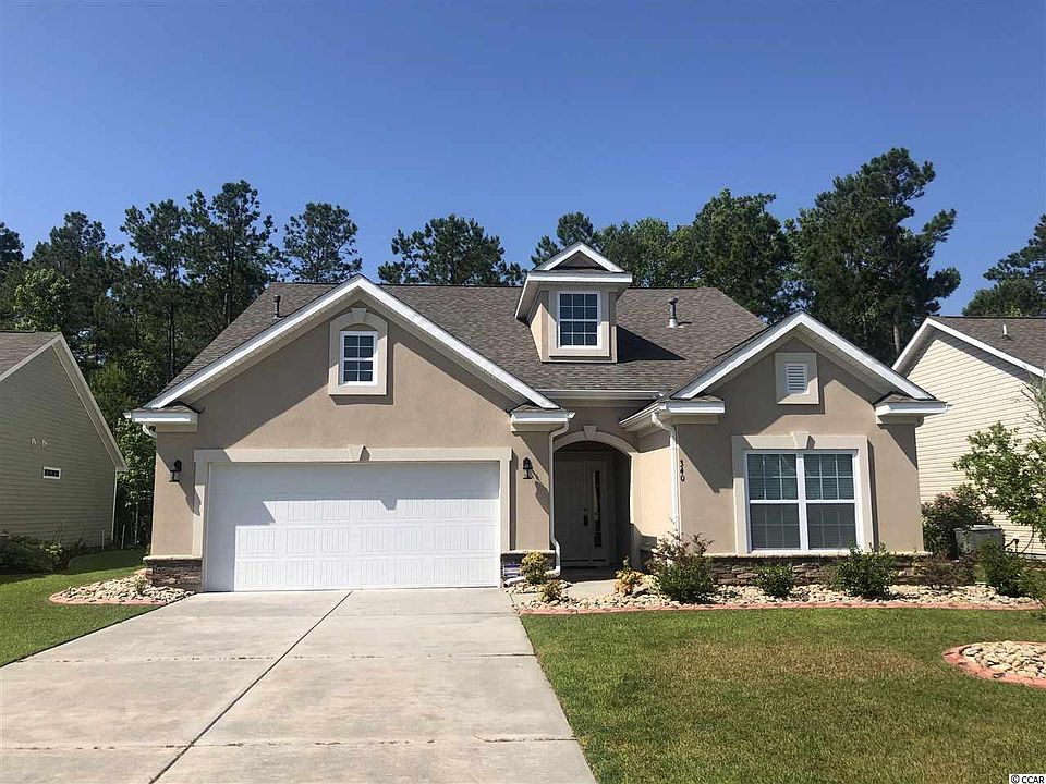 THIS IS THE OKATIE FLOOR PLAN WITH STUCCO FRONT. THIS HOME HAS 3 BEDROOMS AND 2.5 BATHS, WOOD FLOORING, GRANITE COUNTERTOPS, STAINLESS APPLIANCES, UPGRADED PAINT THROUGH OUT, NATURAL GAS COMMUNITY, IRRIGATION SYSTEM, VAULTED CEILINGS IN THE LIVING ROOM, TREY CEILINGS IN THE MASTER WITH LARGE WALK IN CLOSET, TREY CEILING IN DINNING ROOM, BIRCH CABINETS IN THE KITCHEN AND HAS NEVER BEEN SMOKED IN OR HAD ANY PETS. WASHER/DRYER AND EXTRA REFRIGERATOR IN LAUNDRY ROOM THIS HOME BACKS UP TO THE WOODS. FURNITURE IS NEGOTIABLE. ONLY 10 MINUTES TO THE BEACH!!!