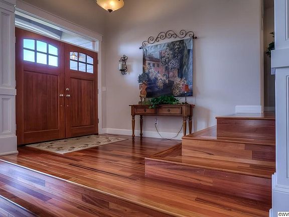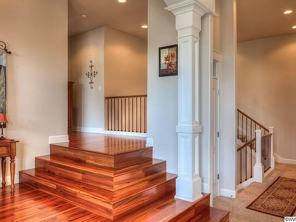 Masterful design and modern luxury are abundant in this beautiful Abiqua Heights home with carefully selected, quality crafted details. Highlighted by Brazilian Cherry wood floors, granite counter tops, stainless steel appliances and energy saving LED lighting fixtures throughout the home. Gas fireplace, gas stove, gas heat, and new gas BBQ line on the patio and Gas dryer line! Entertain in a wide open living room enhanced with 15' ceilings lined with crown moulding and accented by wooden columns. Glass doors showcase the views while opening up the home to even more light and air. Step out to the front balcony and enjoy a one of the many gorgeous Willamette Valley sunsets.