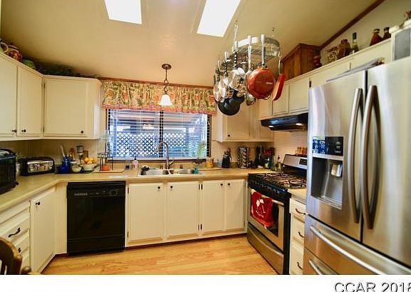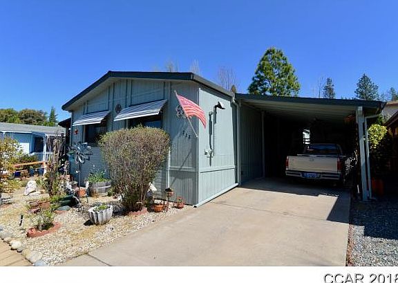 What a great feel! This home resonates with care and upgrades, from flooring, roof, counter tops, 17" tall toilets, sky light tubes, garbage disposal (new in March), roll out pantry cabinet, exterior paint, all new in the past few years. Large open floor plan is comfortable with two large bedrooms & baths. The master bath is large with both tub & shower. The covered porch and patio area are great for relaxing. Two sheds, one for storage & the other a small workshop. This lot has great exposure and has lovely landscaping, from lemon to Japanese maple, pistache & blueberries, tulips and more. The drip takes care of the irrigation. Murphys Diggins is a 55+ adult park that offers pool, both swimming & table, sauna & spa, club house with meetings and activities. Convenient to downtown Murphys.