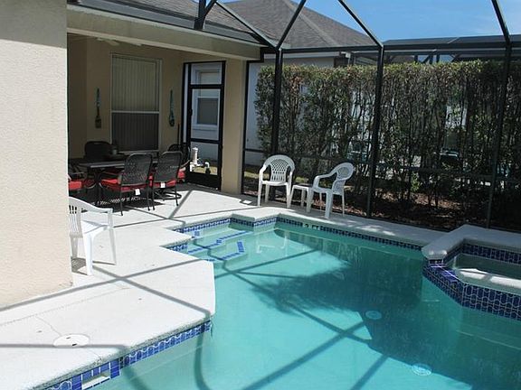 SELLER WILL CONTRIBUTE TO BUYERS CLOSING COSTS AND GIVE A CONCESSION TO REPLACE CARPETS ---PRICE REDUCED AND PRICED TO SELL--- Calabay Parc - Come and see it for your self -- Zoned for short term rentals - Beautiful home for a primary residence or as an investment property to use for short term vacation rental or to let out for long term rental. Seller is very motivated to sell. With almost 2,000sq ft. of living split into 4 bedrooms and 3 bathrooms. It has 2 master suites so it's ideal for 2 families to share if used as a vacation rental. Both master suites lead out to the covered pool area. It has a separate formal dining room, a large dinette and a great family room/living room. The pool has a security fence for safety. There is a great space at the back of the home before you get to your rear neighbors. No immediate rear neighbors gives you more privacy. Close to the Theme Parks and close to I-4, HWY 27 and 192 for restaurants and shopping, hospitals and golf courses etc. This home is spacious, great for a young family, it has a large kitchen with lots of cabinets. Come and see this home for yourself. The seller is keen to worker with a serious buyer.