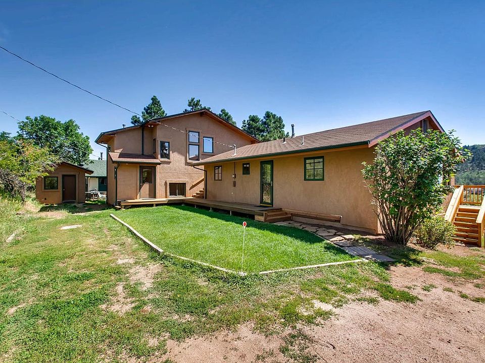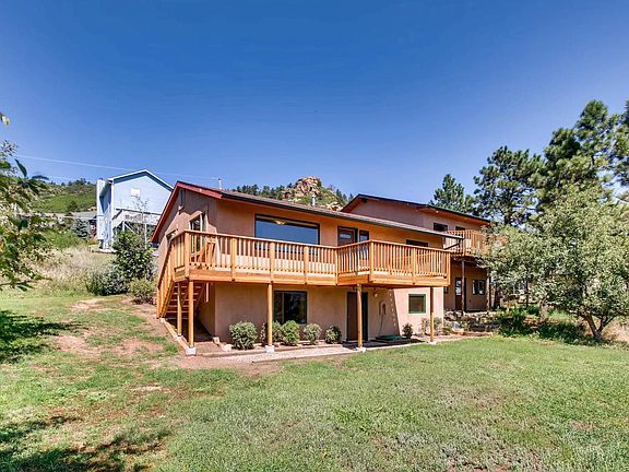 Mountain Town Feel, but conveniently located! 3 structures on property , Majestic views of Mountains, Hills & Lake. Enjoy huge picture windows overlooking the lake & town, open concept kitchen w/ sitting island. Office, Crafts room, temp-controlled storage/wine cellar & non-permitted bedroom on the lower walk-out level. Crafts Room was previously a photo lab. Open Concept Guest House w/ Heated Workshop/ Art Studio w/ large deck overlooking the lake, radiant heated, Kitchen, Bathroom & Art Studio. Wired for surround sound, Computer temp control, a backup generator and motion sensor light control. Art studio's wired with 220v around, piped for central vac clean up system, piped for high pressure air line. Shed (3rd structure). Hiking, Trails, Within Walking Distance of the Lake, Shops, Dining, Lounge, Entertainment.Only 30 Minutes from Park Meadows 15 minutes from Castle Rock & 15 to CO Springs. New Stucco, Decking, New roof going on, fixtures, counters, cabinets, newer windows! BAM!