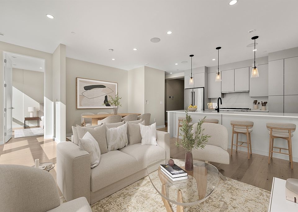 Sleek and spacious, this bright south-facing condo offers 2 bedrooms, 2 full bathrooms, and over 1,000 sq ft of modern living, complete with the convenience of a dedicated garage parking spot in a recently built boutique elevator building. The open floor plan provides generous living and dining areas, while the gourmet kitchen showcases high-end appliances and upgraded fixtures. Freshly painted neutral tones, custom motorized shades, upgraded lighting, and a built-in surround sound system add comfort and style. Enjoy the ease of a full-size washer and dryer in-unit and the sense of community that comes with a small, well-managed building. Residents also enjoy access to a spectacular common roof deck with panoramic city views. Perfectly located near the vibrant Seaport District, this home offers easy access to South Boston’s best dining, culture, and attractions — ideal for young professionals or as an excellent rental property.