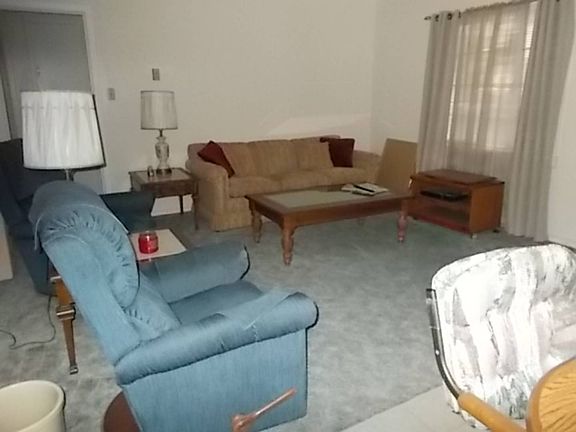This 3 Bedroom - 1 Bath home has been freshly painted inside and out. It has laminated flooring and carpet. The house is 950 Sq ft, but large enough to hold Queen sized beds and comfortable furniture. It is near the Plaza, Post Office, and Library.