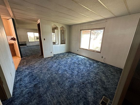 Discover a fantastic investment opportunity with this 1976 manufacturedhome, nestled on a 0.21-acre lot. With 1152 sq ft of living space, this home features 2 bedrooms and 2 bathrooms, ideal for comfortable living or rental purposes. The kitchen is equipped with laundry hookups for added convenience, and there's ample closet space throughout for all your storage needs. The master bedroom boasts a full private bath. Enjoy the outdoors with a fully fenced front and back yard, a covered front patio, a garden shed, and mature trees. A standout feature is the large insulated shop, complete with a concrete pad, metal roof, and wood stove, perfect for hobbies, storage, or a workspace. This property, with its durable metal roof and various amenities, is a versatile find with plenty of potential. Don't miss the chance to make it yours!