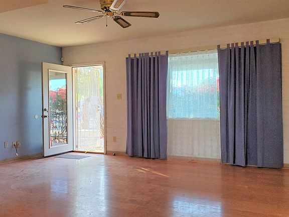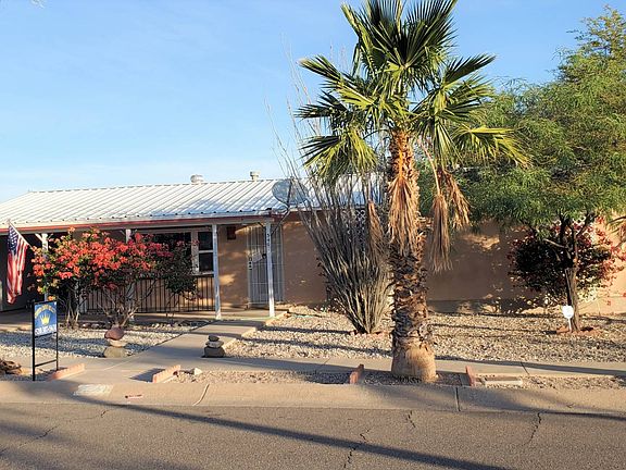 Beautiful 3BR/2bath slump block home is ready to move in. Updated kitchen offers stainless steel refrigerator and stove. Plenty of cabinets for all your kitchen wares. Extended counter top bar offers extra seating for holiday enjoyment as well as the covered back patio right off the dining room through the sliding glass door. Tile and laminate throughout. Central heat and air. Washer and dryer hooks ups located on the back patio. Metal roof and detached garage. NOTE: House is in probate at this point.