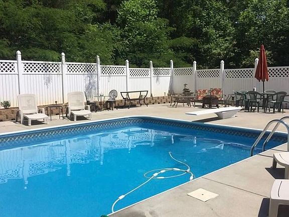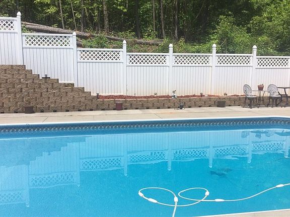 - Exterior: Porch, Wooded Lot, Private Location, Deck, Garden Spot, Fence, Pool, Out Buildings Workshop, Firepit Area