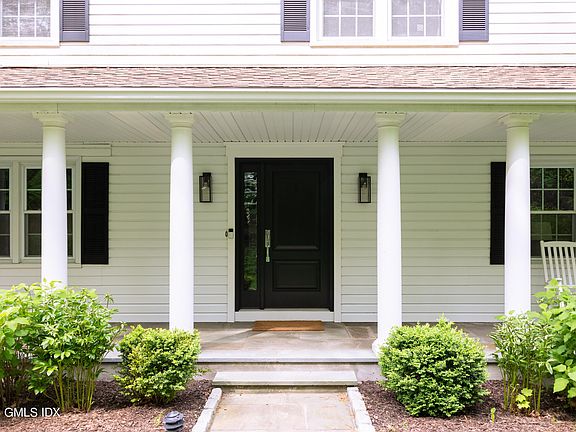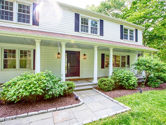 Wonderfully private center hall colonial in convenient North Stamford location. Relax on the serene front porch or head around back, where sliders lead to the bi-level Trex deck with integrated lighting and sun setter awning (2022), overlooking the backyard with mature trees. The fully renovated kitchen with oversized island, marble counters and Thermador appliances flows beautifully into adjacent dining and formal living space with large picture window and bar/beverage center. Family room with working fireplace, office nook and powder room. Spacious 2 car garage with 10ft ceilings and work bench. Large primary has his/hers closets and en-suite bath with oversized curbless shower. Three additional bedrooms with ample closet space, new hall bath & large linen closet complete the 2nd floor. The finished, walk-out basement is currently used as a play space with separate laundry/mechanical room and sink. Additional features include new roof (2021), 3 zone HVAC, updated electric, new solid interior doors & moldings, recessed lighting and much more!