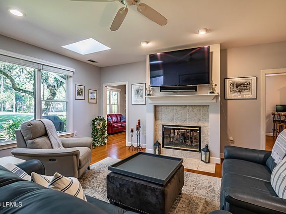 Great opportunity to own a charming updated home on Dataw Island. This custom property features over 2,700 sq ft of space with high ceilings and an abundance of windows and natural lighting. Hardwood flooring, a two-sided gas fireplace, updated kitchen, built in cabinetry, dedicated office, high ceilings and walk in closets are just some of the fantastic features. Recent improvements include a new roof, new paint throughout, refurbished kitchen cabinets, new stainless-steel appliances, new fixtures, new carpeting and much more. This custom floor plan provides for two large living areas with both a Great Room and a Family Room. The private Dining Room, currently being used as an office, is large and even has a wine cellar. The Kitchen is designed for a chef and includes a gas cooktop, new double ovens, and a breakfast bar perfect for social gatherings. Located on the main level, the Primary Bedroom is spacious with soaring ceilings and access to the screened porch. The primary bath features a soaking tub, zero entry shower, water closet, built in cabinetry and a double vanity. There is also a private Study/Den on the main level for an office. Upstairs you will find the perfect private retreat for visiting guests and family with two oversized Bedrooms, each with a walk-in closet, and an updated full bath. Step outdoors to enjoy your front porch or go outback to your tabby patio or large screened in porch to take in the beautiful fairway views. This home offers everything you will ever need for relaxing and is move in ready. As a resident of Dataw Island, you will have access to lifestyle amenities including a resort pool, a fitness center with indoor pool, two championship golf courses, 8 tennis courts, a full-service marina, pickleball courts, bocce, an art studio and more. Located just six miles from the beautiful historic downtown of Beaufort and the beaches of Hunting Island State Park. Membership in Dataw Island Club is required.