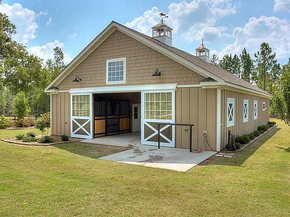 A turn-key Equestrian Property with +/- 3000SF all Brick home with open floorplan, 3 car garage, large mudroom. Driveway has private entry with electric gate with brick columns. House has lots of storage, 10' ceilings & oak floors throughout. The Gourmet Kitchen has Stainless Steel appliances, 6 burner gas cook-top, double oven, custom cabinetry. HVAC is 95% efficient gas furnace with 3 zones, and lots of attic storage. Screen porch has views of the backyard, barn and also has a putting green for the golfer. There is direct access to the trails & only 5 lots from the South Arenas, X-Country Course & Activity Center! The barn has 4 stalls with Classic Equine stall fronts, Tankless Hot Water Heater, washer and sink, extra-wide center aisle, tongue & groove walls and ceilings, feed room, tack room, and 36'x24' covered equipment storage area on back of barn. There are (2) 12x20 run in sheds - 3 paddocks.