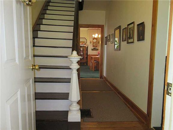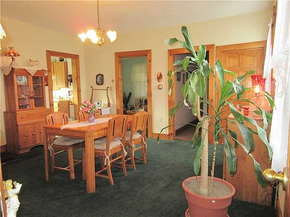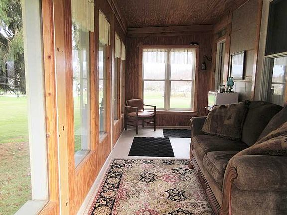 This home has a lot to offer. It has been very well maintained. Enter into the sunroom at the front of the home used as a setting room. There is a large dining room with built-in cabinets, nice size living room, updated kitchen, first floor laundry, huge main bedroom, large second bedroom with a half bath connecting the upstairs bedrooms, updated double pane windows. There is a back porch that leads to the 2 acre totally flat lot. Lots of off street parking and plenty of room for a large garage.