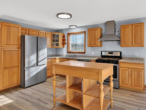 WINDSOR - Charming 3-bedroom, 2-bath chalet home on 2.5 peaceful acres. Features beautiful pine tongue-and-groove in most rooms also new flooring in a lot of the house, an open-concept layout, first-floor bedroom, and a separate laundry room. Full basement offers great storage or future potential. Enjoy a rural yet convenient location. Includes a heated 2-car garage, inviting front porch, new flooring, Generator hook up, and a nice functional layout.