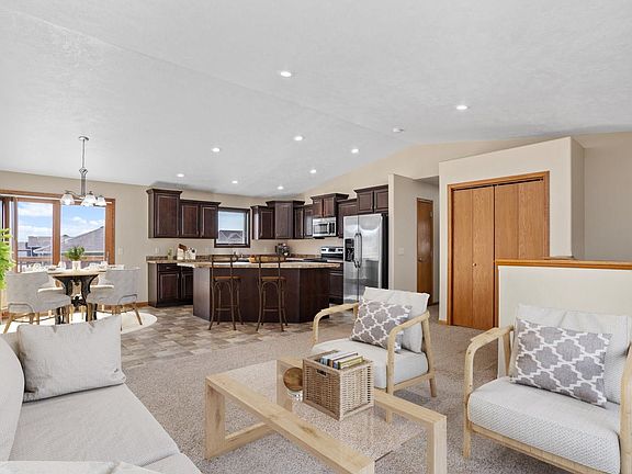 Located in NE Minot’s Stonebridge development on a spacious corner lot sits this turn-key 4 Bed, 3 Bath home! This split foyer welcomes you with its sizable entry offering plenty of storage options with its nearby coat closest and built-ins! The upper level features a convenient flow with its open concept kitchen, dining and living room area where the space is maximized by the vaulted ceilings! The kitchen is the focal point of the room with its stainless steel appliances, an island, and nearby access to the 10x12’ deck. The rest of the main level offers a full bath, guest bedroom and the primary suite which has dual closets and a private ensuite! The downstairs features a family room boasting fresh paint, newly installed vinyl plank flooring along with a full bath, 2 additional bedrooms and the laundry area! The 24x24’ 2 car garage is equipped with electric heat and provides multiple exterior exits! Outside there’s additional parking, perfect for RV’s or your extra vehicles! Enjoy the spacious lot with the fully fenced in backyard; did we mention the hot tub stays?! With a nearby park, restaurants and grocery, this is a home that you’ll want to check out!