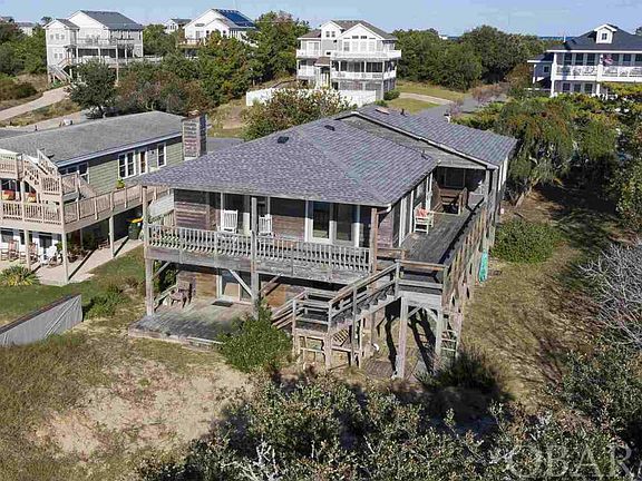 Rare opportunity! Soundfront home in Kitty Hawk. Homes in this location go quick! This home has two living spaces, plenty of views and a ton of potential. The top level has master bedroom with it's own bathroom, and an attached sunroom. There's another bedroom and full bathroom on this floor, plus a room used as an office. There's a large family room that showcases the fantastic sound views, with a gas fireplace. The galley style kitchen opens to the dining space with sound views. Two sets of sliders lead out onto the sound-facing covered porch. The bottom level has a garage, and more finished space. There is a bedroom and full bathroom on this level, plus a bonus room, another gathering space and kitchenette. Enjoy fantastic views from this level also, with sliders that open to the covered patio. Roof replaced 2017, HVAC replaced 2018. Septic redone in 2013. Top level is conditioned with central heat/air from a compressor and air handler. Ground level is conditioned with window units. The structure appears to be in good shape but it is a fixer upper. New floors and paint, plus kitchen and bath updates will make this one really spectacular.