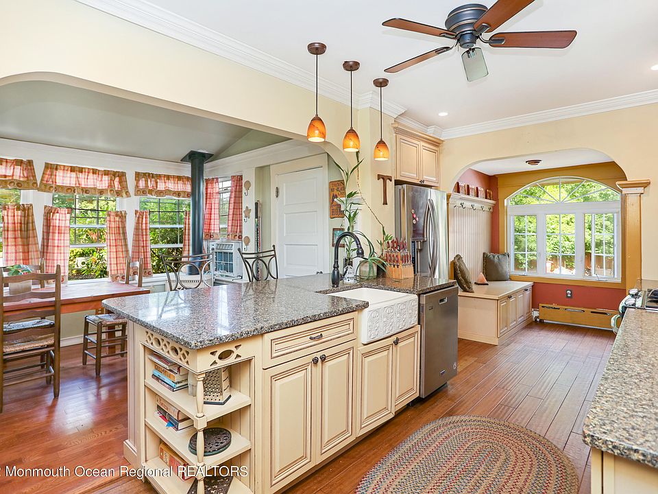 Charming COASTAL FARM HOUSE just minutes to beautiful beaches perched on expansive and lush grounds. Take in the summer breeze from your wrap around mahogany front porch or enjoy back yard BBQs on the lush grounds. Uniquely graced with the charm of yesteryear yet loaded with upgraded amenities including a newer kitchen with granite counter tops, stainless steal appliances, breakfast bar and pantry. Hardwood floors are throughout the home and windows are large and rooms sun filled. The living spaces are expansive, with an open floor plan graciously leading you room to room. Heated 2 car garage features a professional workshop. The partially finished basement makes for a home office. The character of this home is like no other, lovingly cared for and waiting for the next owner to cherish.