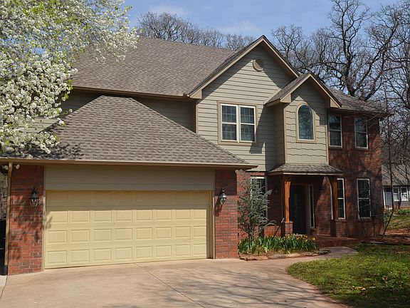 Incredible trim and built-in woodwork in all 2,625 sq ft -- this home was constructed by a carpenter! Complete renovation and updates throughout, including 3 cm granite counters in September! Just 4 minutes to I-35 and easy commuter access downtown and Edmond proper. Minutes from the brand new Charter Oak Elementary School and the Covell Showbiz area. Wooded and nestled among mature trees and a creek bed deer wander through. Gorgeous full length window views, vaulted ceiling and a cozy second fireplace from an enormous master bedroom (20’ x 17’). This is a true 2-story with 4-sides brick exterior. 2 wood burning fireplaces, including the master bedroom. Enormous rooms upstairs as well as laundry, utilities, and beautiful built-in furniture. Master bath with waterfall, jets, and a picturesque view. Huge multi-purpose entertainment room (19’ x 22’) with built-in desks and wired for surround sound. Solid oak raised-panel interior doors. Custom 2" wood blinds and window coverings. Insulated extra-wide large double-deep garage (2-door in, 819 square feet utilized for boat storage and workshop in addition to 2 in-and-out vehicles). Exterior cedar house (20’ x 12’) and shed both wired with electricity. Brick, siding (LP Diamond Kote siding, soffit and fascia: 50 year warranty on siding and 30 year no-fade on paint) and large stamped concrete patio completed 1 year ago. All new triple-panned ultra low E double hung windows and exterior fiberglass doors. Zoned heating and air units replaced and updated: two-stage heat pump and 21 seer AC. R-48 attic insulation. Hot water heater with energy smart system. Updated well pump was the first of renovations over the last 5 years. All-electric and averages $150/mo. Travertine tile downstairs; lush carpet upstairs and wood landing brand new. New appliances including Jenn-Air convection oven and GE microwave. Jenn-Air stove top with exhaust below and alternating stove top accessories. Walk in pantry (with a window). Newer side-by-side refrigerator and HE washer and dryer (upstairs) can stay. Long paved drive with extra surface spaces. Professionally installed underground dog fence around full 2+ acres and french drainage to the creek. Full guttering with covers. Ideal area on a prime piece of beautiful land. Our creek has helped mature some of the largest trees around. This is a perfect retreat within an easy commute. Buyer's agents welcome.