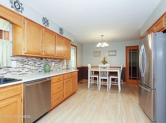 Beautiful 3 bedroom 2 and 1/2 bath home for sale with over sized 2 car garage. Wonderful quartz counter tops and Marble backsplash are found in the kitchen. The marble backsplash features glass mosaic tile accents and has a rolling island. Stainless steel name brand appliances in the large kitchen with table space. Upstairs we have 3 good sized bedrooms and a main bath with a double vanity. The lower level has a family room with a stone gas start fire place, 2nd bath with walk in shower and laundry room with front loading washer and dryer. The over sized 2 car garage with 1/2 bath and off the back of the garage is the sun room/work room. The back yard is amazing. If you are looking for a fully fenced in yard that is private and treed. This is the home for you. Please, act now.