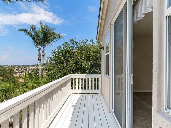 Welcome to this fabulous home in sought-after Santa Fe Trails on a large corner lot. Enjoy fabulous views from the premier bedroom deck overlooking lush landscape and big backyard. A gourmet kitchen with white cabinetry, stainless steel appliances, wine refrigerator and granite countertops. Great floor plan offering huge premier bedroom with large sitting area. Family room with custom built in cabinetry and brick fireplace. Optional fourth bedroom/ office with custom built-in cabinetry. Large living room with volume ceilings, multiple windows and cozy fireplace. Walking distance to award winning elementary, middle and high schools. Minutes to the beach, parks shopping and restaurants. Renter responsible for gas & electric, water and trash. No smokers. Owner pays for HOA fees.