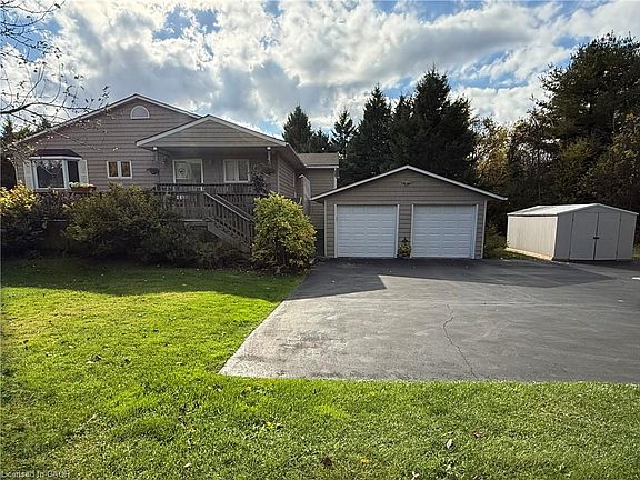 Prime Location & Endless Possibilities - Discover the perfect blend of privacy, space, and convenience with this charming 3-bedroom raised bungalow, nestled on nearly 5 acres of peaceful, picture-perfect countryside — just 1.5 km north of Dundas Street! Enjoy the tranquillity of rural living without sacrificing proximity to city amenities. Set back approximately 350 feet from the road and surrounded by mature trees, the home features exceptional privacy and a quiet retreat from everyday noise. Inside, the open-concept layout is bright and inviting, featuring great flow and abundant natural light — the perfect canvas to personalize and make your own. The bi-level front deck welcomes guests in style, while the primary bedroom’s private walk-out deck is ideal for morning coffee or evening relaxation. The partially finished lower level is drywalled and sub-floored, featuring a gas fireplace and above-grade, chest-level windows that bathe the space in natural light. It’s a blank slate ready for your imagination — whether you envision a family recreation area, guest suite, home office, or studio. A detached double garage with automatic doors and an additional storage shed provides ample space for vehicles, tools, and hobbies. The kitchen includes built-in appliances (range, oven, and dishwasher), while essential systems — drilled well, UV water filtration, and owned water softener — ensure comfortable, self-sufficient country living. Whether you’re ready to move in, expand on the existing footprint, or build your dream home from the ground up, this property has endless potential. Don’t miss this rare opportunity — a peaceful country retreat just minutes from everything!