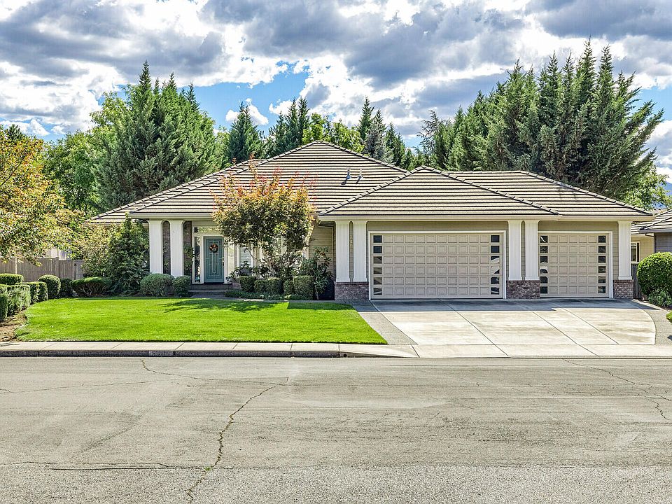 You'll fall in love with this gracious single-story home in the sought after Larson Creek neighborhood. Situated on a park like .31 acres, this 2481sq ft. home offers 3 bedrooms, 2 full baths plus a 3 car garage. Inviting entry features high ceilings, hardwood floors & is open to formal den & dining room w/alabaster light fixture. The great room open to kitchen & breakfast nook showcases a beautiful fireplace w/built ins & tray ceiling. A wall of windows & open floor plan makes this space perfect for entertaining. Inviting kitchen is spacious & bright w/white cabinetry, granite counters & gas range. Primary suite w/door to back deck is a retreat w/private spa like bath, double vanity & walk in closet. 2 additional bedrooms & a full bath at the end of a wide hallway w/hardwood floors. Bedrooms feature plantation shutters. The backyard oasis is a well thought out space w/lovely deck to take in easy care backyard & the creek beyond. Close to medical, shopping, dining plus 3 car garage!