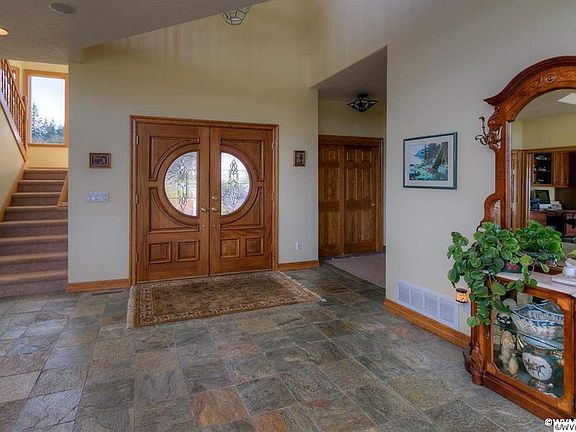 Accepted Offer with Contingencies. Want it all? Mountain views, seclusion, farm deferral, pastures or crops, and an amazing home and outbuilding/ barn. Less than 10 minutes from Salem and in South Salem School District. The many updates includes stone flooring, hardwood, newer carpet & paint. Master Suite on each level and custom office on main. A luxury home with room for toys and animals.