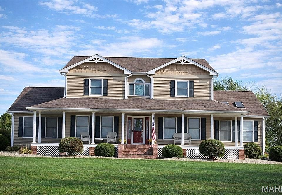 This stunning 2-story home at 3400 Denman Road, Farmington, MO, offers 4 bedrooms, 3.5 baths, and approximately 3600 sq ft of beautifully updated living space on a large, level corner lot just minutes from Farmington city limits. The main level features gorgeous wood floors, a cozy living room with an insert wood-burning fireplace and French doors leading to the back deck, a beautifully updated kitchen with vaulted ceilings, skylights, a center island, and stainless-steel appliances, plus a separate dining room, additional sitting room, laundry/mudroom off the 2-car garage, and a main-level bath with marble countertops and a claw-foot tub. The fourth bedroom is currently used as a spacious walk-in pantry but could easily serve as a bedroom or office. Upstairs, the master suite includes double closets and a fully remodeled master bath with a freestanding tub, tiled shower, and marble double vanity, along with two additional large bedrooms with double closets and a charming half guest bath. The finished walkout basement includes a full bathroom, a large family/rec area, and a utility room with direct exterior access. Exterior features include beautiful landscaping, a large covered front porch, a long driveway, and a 50-amp generator hookup already installed. This gorgeous home is a must-see!