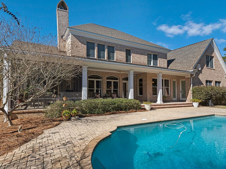 Southern Living in Panama City Beach! This custom built brick home is located on a cul-de-sac in the popular Legends side of Bay Point. Great outdoor space with large 18x 36 pool, wrap around porch, circular drive and oversized 3 car garage. Ideal layout for large families with a first floor master bedroom and 4 additional bedrooms, 3 full baths, kid's game room upstairs (can easily be 6 bedrooms if needed). Enjoy hardwood floors, crown molding throughout, built ins, plantation shutters, Anderson windows and doors, 2 fireplaces, solid wood doors and more. New roof 2019, paint 2019, 3 inside HVAC units 2014, pool resurfaced 2018. All cabinets painted white 2020. Call for your private showing today! Seller is a licensed realtor.