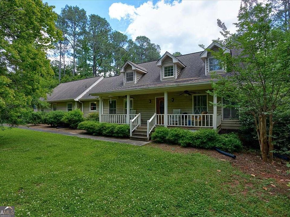 Honey, stop the car! This is the perfect home. Situated on almost 8 acres of quiet serene land for country living at its best but only minutes from schools, shopping, restaurants and I-20! The best of both worlds. You'll enjoy mornings sipping coffee on your covered front porch that will hold enough rocking chairs and swings for the whole family. A bright vaulted 2-story foyer with beautiful hardwood floors and winding staircase is just the beginning to what you'll discover and love about this home. The kitchen has an abundance of beautiful stained cabinets, Corian countertops, tiled backsplash, oversized eat-in breakfast area, and a keeping room. There is a separate dining room for all those special family dinners. The oversized family room has built-in cabinets/shelves and woodburning fireplace with gas logs. The primary bedroom is located on the main floor with his and her closets, built-in cabinetry, and full en-suite bathroom. The sunroom and back decks overlook an expansive back yard with fire pit area, and huge garden area. This whole main floor has so much natural light with all the windows and wood floors throughout - except the tiled bathroom and sunroom floors. Upstairs you will find two large secondary bedrooms with a shared bathroom and plenty of closet space and built-in cabinets/shelves. And that laundry room... one word... huge.. it is to die for! So, I know this all sounds incredible but I am not done yet! Let's go downstairs to the full finished walkout/daylight basement! You'll love the huge family room with wet bar and woodburning stove, the extra bedroom and full bathroom, the office and all the closets for storage PLUS a workshop!! YUP... and the shop is heated and cooled!! Some people might call that a little "bougie" but that's just how this house rolls! There is a massive walk-in attic space for storage and pull down attic stairs for more storage, an attic fan for cooling the house down on those cool fall evenings, and tons of closets and storage spaces. This property is wooded in the front yard to give a nice peaceful buffer between the house and the road. The barn is 36' X 36' with a low-maintenance metal roof. There are pastures behind the barn that are completely fenced in for horses, cows, goats, or anything else your heart might desire. There is a creek that also runs across the back of the property for watering the animals. The tractor could also be negotiated into the deal so what are you waiting for?? Get your offer in today before this diamond in the rough is gone! Property is being sold AS-IS and is listed at current appraised value. If buyer's Broker/licensee is not present at initial showing, Buyer's Broker compensation drops to 1%. Appointment IS REQUIRED. Home is occupied. Please do not come on to property without a confirmed appointment.