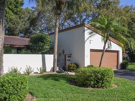 This beautifully maintained END UNIT villa in the desirable Wild Oak Bay is ready for you to move in and enjoy the park-like setting. Two patios and a fenced in, pavered courtyard provide plenty of space for relaxing and entertaining. Villa has vaulted ceilings for roominess plus a 2 car garage for storage. The kitchen features new Samsung appliances, Corian countertops, & plenty of cabinets, making meal preparation a dream. Numerous upgrades include oak flooring throughout the living room and bedrooms, tile in the kitchen and baths, updated bathrooms & plantation shutters. A moisture barrier has been installed around the perimeter of the home, the A/C and hot water heater were recently replaced. The enclosed lanai looks out to an abundance of lush, green foliage, bringing the outdoors in. This villa provides a peaceful oasis in a most convenient location. Just a short walk to the community pool and spa. Come experience it for yourself. You will not be disappointed.