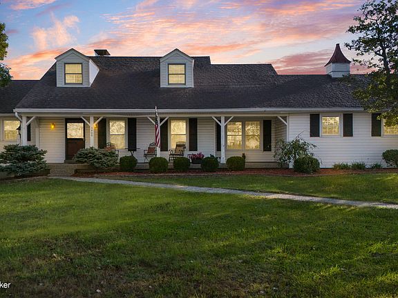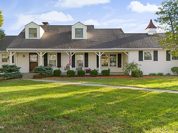 Quintessential Oldham County Farm on the market for the first time since 1979! Lovely 30 acre farm with a perfect mix of pasture and light woods. The current owners had horses on the property for many years, but now have approximately 9 acres cut for hay and bush hog the residual. The property includes a metal pole barn with a gravel floor. The home is absolutely charming! Stunning views from the front porch and rear screened porch! The home has an open concept with a large family room that opens to a hearth room with a fireplace. The kitchen is light filled and charming! The mud room has a full bath perfect for coming in and cleaning up after playing on the farm! The first floor primary suite is well sized. The second floor offers three bedrooms and a full bath. Over the garage has attic space for storage. The basement has a large family room and a study or exercise room. There is a large amount of storage on the walk out end of the basement. Truly and absolute treat of a property!!