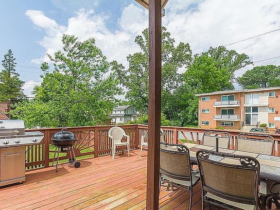 PICTURE PERFECT PORCH FRONT COLONIAL WITH 3 FINISHED LEVELS & LARGE FENCED YARD! Gleaming hardwood floors throughout the main level, spacious living room w/ wood burning fireplace, separate dining room w/ crown molding, updated kitchen w/ tile backsplash, upper level w/ 3 large bedrooms & 1 full bath, finished basement w/ family room, possible 4th bedroom, & half bath, large rear deck overlooking the massive level yard with privacy fence - perfect for entertaining! 12 months lease duration owner pays for water, sewer, cable and electricity Tenant is responsible for other utilities in the house and trash payment Smoking outside only