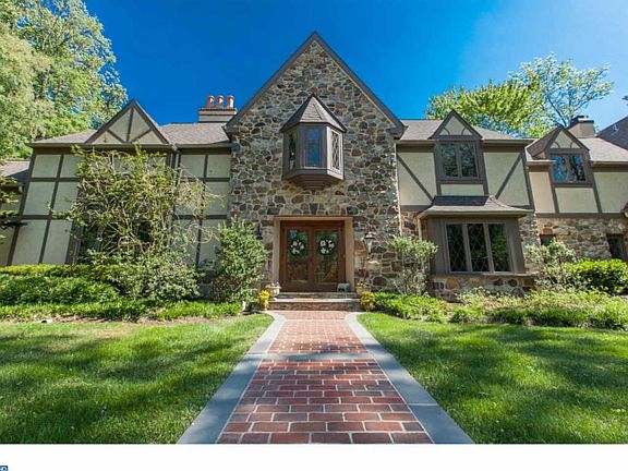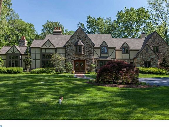 Must see renovated English Tudor home filled with abundant light, graceful rooms, a layout conducive to entertaining, and finishes of the finest quality. This grand 5 bedroom beauty with 4 full baths & 3 powder rooms sits on 3/4 acre of professionally landscaped grounds. Enter the home from the brick lined circular drive & flagstone walkway into the welcoming foyer. Flanking the front foyer are open views to the formal living and dining room, each enhanced with extensive mill-work and hardwood floors. In the formal living room you find two-story vaulted beamed ceiling, floor to ceiling windows, fireplace, and built-in shelves. From there pass through the elegant double doors into the large~cherry-paneled wainscoted office with fireplace, bookcase wall, triple window and wet bar w/frig. The casual entertaining areas are at the back of the home. Magnificent gourmet kitchen with custom cabinets, wide plank chestnut floors, granite counters, large carrera marble island w/seating, Viking 6 burner range and wall oven, Sub-zero frig, handmade tile back-splash, built in butler's pantry and more! Adjacent to the kitchen is the herringbone brick mudroom complete with walk in pantry, desk area, and large laundry room. From the breakfast area you find the formal powder room and spacious family room complete with stone fireplace, custom built-ins and triple slider to~backyard. The backyard is the ultimate entertaining~area,~with an expansive limestone patio, black bottom pool, stone fireplace, and outdoor kitchen with Dacor gourmet grill...all in this~beautiful~fenced backyard. Upstairs is a custom library balcony overlooking the formal living room. On the second floor is a large master suite with vaulted ceilings, travertine marble gas~fireplace, two walk in closets and spacious en-suite travertine marble bath with~luxurious~glass shower, jetted heat controlled tub, double vanities, water closet, and heated floors.~Four additional spacious bedrooms, two with tiled~en-suite~baths and a~large~hall bath with custom cabinets and double vanity. In the lower level you find an entertaining space, powder room and tons of storage. Other features include an enlarged two car garage, security system, speaker surround sound~system~and much more. This gracious and elegant home has been lovingly and painstakingly renovated by the current owners over the last ten years. Excellent location, convenient to top restaurants, SEPTA/R-5, 476, airport, City, EA, NDA and Delco Christian.