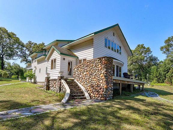 DRIVE DOWN THE PRIVATE DRIVE TO THIS INCREDIBLY CHARMING ESTATE WITH 380 FT OF BURNS LAKE WATER FRONTAGE formally known as ''Majors Green Acres Estate!'' As you walk inside this incredibly unique home, you will find 7 bedrooms, and 5 1/2 half baths. Completely renovated, you will find Maple wood flooring, custom stone work, wood ceilings, beautifully finished bathrooms with ceramic tile and tiled walk-in shower. Every bedroom is its own serene getaway, with plenty of room and beautiful views. This Retreat is a perfect opportunity for a B&B a personal year-round home, or a company retreat! Other amenities include a large 4 stall garage, game room, tennis courts, a beautiful memorial garden with fountain, indoor hot tub, and a beautiful stone fence that surrounds the estate. Enjoy boating,