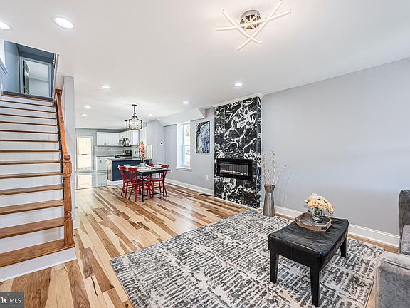 BEAUTIFULLY DESIGNED PORCH FRONT RENOVATION WITH 3 FINISHED LEVELS OF LIVING SPACE & OFF STREET PARKING! Features include an open floor plan with wood flooring throughout the main level, a spacious living room w/ an electric fireplace and dining area, a Chef's kitchen with ss appliances, granite counters, & tons of cabinet space, a main level half bath, upper level Primary bedroom suite with a full bath and 2 additional bedrooms with a hall bath, a finished basement with a 4th bedroom, an inviting covered front porch which is perfect for relaxing and new extra large parking pad! Located on a corner lot and convenient to Saint Agnes Hospital and quick commute to major roadways!