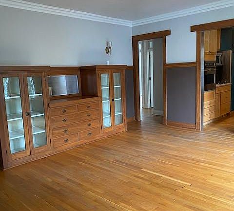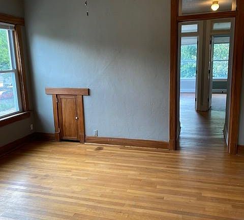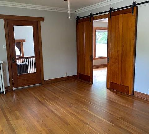 Bright large 3 bdrm/1 bath top floor apartment that lives like a 4 bdrm single family home. Kitchen w/tons of storage, gas cooktop, SS oven, fridge, DW, disposal, updated bathroom & new W/D. LR has decorative fireplace & built-ins w/vintage barn doors to large bonus room. Sunroom has wall-mounted shelving for 2 WFH desks. Professionally refinished hardwood floors, trim & built-ins. Extra storage outside front door, garage space included. 2 cats allowed w/pet deposit, no smoking and utilities not included. Utilities not included.