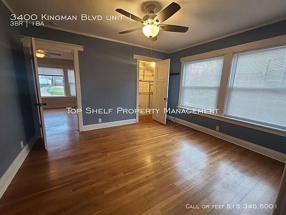 This 1737 square foot apartment home has 3 bedrooms and 1.0 bathrooms. This home is located at 3400 Kingman Blvd UNIT 1, Des Moines, IA 50311.