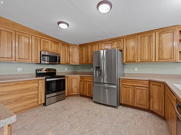 Total recent remodel inside and out. Custom hickory kitchen by Boman Cabinets and matching entertainment center. Separate family room and living room. Very spacious open floor plan. Kirkway location on the edge of town. Oversized 25 x 35 m/l garage. Wide doorways and hallway for easy access.