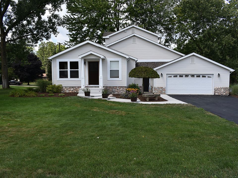 Craftsman style home with large composite deck for entertaining on back along with new concrete walkway and porch with custom built pillars and new front door. The 2-car garage with cabinets has an extra long driveway to accommodate 4+ vehicles. Added skilled details can be found throughout the home. Crown molding around ceilings as well as around windows. Skylights and many large windows allow light to stream in keeping this home bright. Need a little shade or privacy? New Levlor cordless blinds added to great room. Mudroom entry has custom built bench with storage with new tile and LED recessed lights. Wood flooring is located on landing leading to first floor, stairwell, kitchen/dining/great room and one of the bedrooms. 9' ceiling in kitchen/dining/great room. New quartz counter-top with bar counter (2017) in kitchen. Soft close cabinet doors. Under cabinet lighting and ambient lighting above. All appliances stay. Great room has vent-less gas fireplace, wiring for sound. First floor full bath completely remodeled in 2017 with new tile, bathtub, shaker style vanity, quartz counter-top, under mount sink and faucet. Bedroom 1 has custom built desk/workstation for kids to get school work done or use as office for adults. Bedroom 2 carpeted with built-in dresser and walk-in closet. Front room has new tile entryway, architectural style ceilings and skylight. Stairwell leading up to second floor Master Bedroom with vented gas fireplace, attached master bath, walk in closet with full length mirror. Master bath has double vanity, a sit down vanity, jetted tub, separate large shower with rain-shower head. New carpet (2017) installed in stairwell, bedroom, and closet. Finished basement has glass block windows and additional rooms and storage. Laundry room has folding station, basket cubbies, built in ironing board and stacked front end washer and dryer-those stay too! Outside has sprinkler system, fencing, shed, and additional electrical outlets to make exterior holiday lighting a breeze. Call for your own appointment to see and appreciate the details. Seller/Owner is an agent.