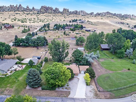 Your quiet slice of country life awaits! Unobstructed views of Devil's Backbone with a mature yard are highlights of this lovely home. Bring your horses with the county allowing for up to 2 horses, a fenced in pasture, a loafing shed and a tack room complete with power. This sprawling ranch with central A/C makes a perfect country home only minutes from downtown Loveland. Oversized 2 car garage, functioning chicken coop, sprinkler system, and plenty of storage. Must be seen to be appreciated!