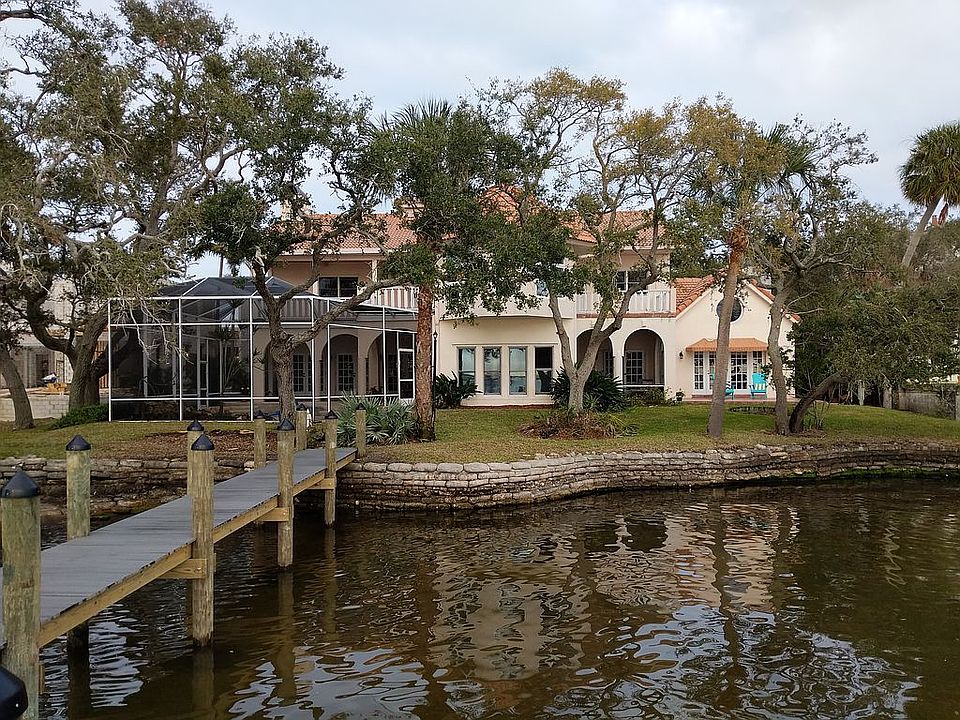 This custom built Spanish Mission style home is located on North Riverside Drive in Indialantic and sits on a 1.2 acre private lot with 100' of direct Indian River access. The downstairs living area offers a comfortable and casual living space with a large family room, eat in kitchen as well as a formal dining and living room. There are two half bathrooms on the first floor along with a bedroom/office with an adjoining bathroom and walk in shower. The family room and the living room each have their own fireplace and there are two separate stair cases to access the upstairs. A pool area off the kitchen and family room overlooks the river and offers outstanding views of water and wildlife year round. Upstairs features 3 additional bedrooms plus the master. The master suite includes a large bathroom with a Jacuzzi tub, walk in shower, adjoining walk-in-closet and separate office. The house was built for family living and enjoyment.