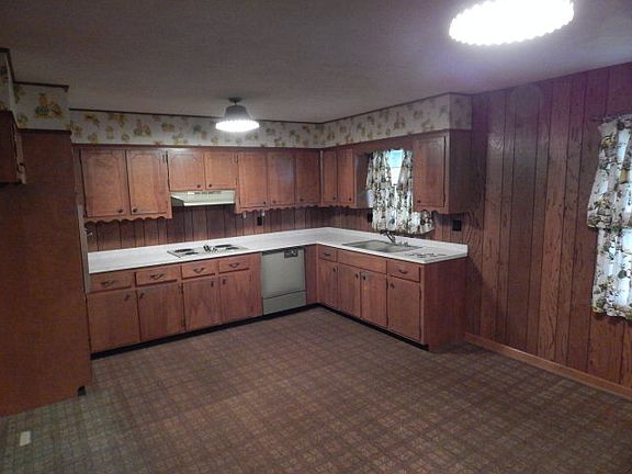 New paint, new doors, new ceramic tile in baths. Laminate flooring in kitchen, stainless appliances in kitchen, white cabinets. New windows have been installed. New sidewalk. House has been appraised at $180000.00