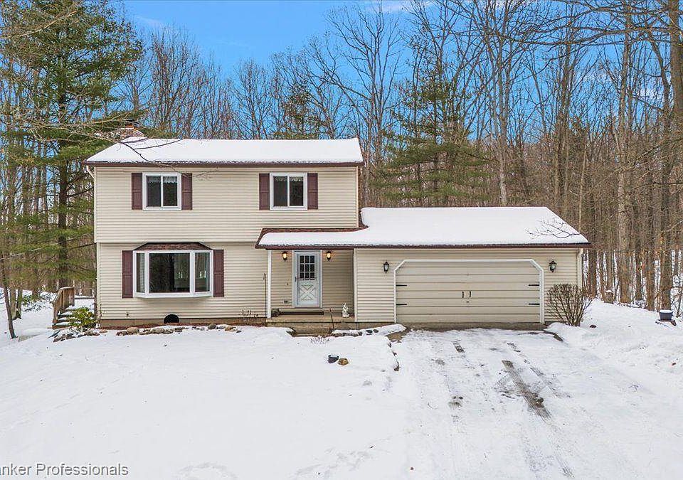 First time opportunity to own this custom-built home. Driving down the private road will have you falling in love immediately. The setting and acreage are phenomenal. 16 acres of privacy, solitude and beautiful hilly ravine woods budded up to state land. Incredible wildlife and nature. 4 bedrooms upstairs with a primary suite and an additional full bath. Large beautiful front window to enjoy the gorgeous view. Open kitchen and dining area that shares a natural fireplace with the living room. Amazing 3 season room off dining room that leads to the side yard. Talk about a picturesque view and lots of wildlife!!! coming in from the 2-car attached garage is a great space for the mud room and a 1/2 bath. Full finished basement with a walk-out and another full bath. The walk-out leads to a patio under the 3-season room. Laundry is downstairs. New roof and chimney work in 2024, new siding 2015, new well 2016. 24x48 pole barn with heat and cement on half. Large shed for additional storage. Andersen windows. Don't miss out on this rare opportunity! Buyer to verify all information.