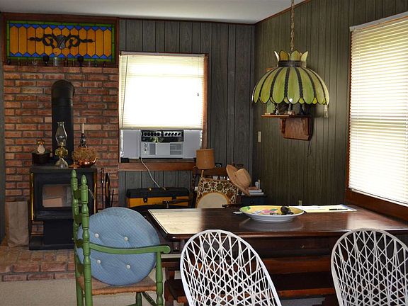 - FEATURES: Range, Refrigerator, Mini Blinds, Wood Stove