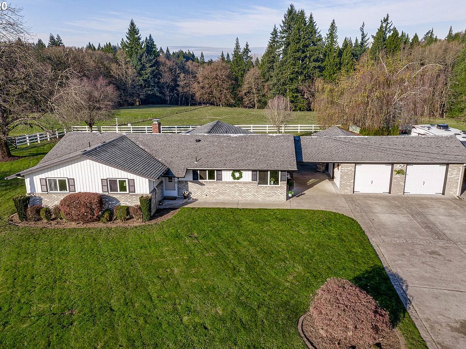 Gorgeous Horse Property in highly sought after Ridgefield location-just minutes to shopping & freeway access. This picturesque farm features a tree-lined drive, white vinyl fencing & variety of fruit trees. Perfect horse set up w/ large barn featuring 4 complete stalls, water and power. 2nd barn for hay storage & horse shelter. Updated home w/ huge great room overlooking the pasture. Home features new engineered hardwoods, updated kitchen, quartz island, custom tiled shower & so much more!!