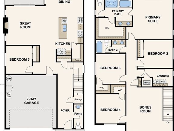 McCormick Quick Move-In. 2587SF 5BR+Bonus/2.5BA/2CG SMART home@N/S Lot 54! 8' entry door, 9' ceilings, great rm w/shiplap GAS fireplace, BR5/Office & 1/2 Bath. Gourmet island kitchen w/42"soft close solid wood cabs w/crown & pulls, under cab lighting, 5 Burner GAS cooktop w/hood, smart convection wall oven & micro, d/w, pantry, tile backsplash. QUARTZ ctops@kitchen/baths! Primary BR w/ensuite bath w/2 sinks, tub, tile shower w/heavy frameless glass & WIC. 8' garage door, Covered patio, washer/dryer/fridge & fencing included! Handrail & Side yard fencing 2b completed b4 closing. Reg Policy 4784: Brokers 2 register buyers prior 2or@1st visit. Ask about our rates available as low as 4.875% w/Inspire Home Loans!