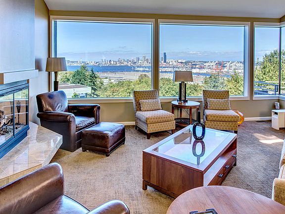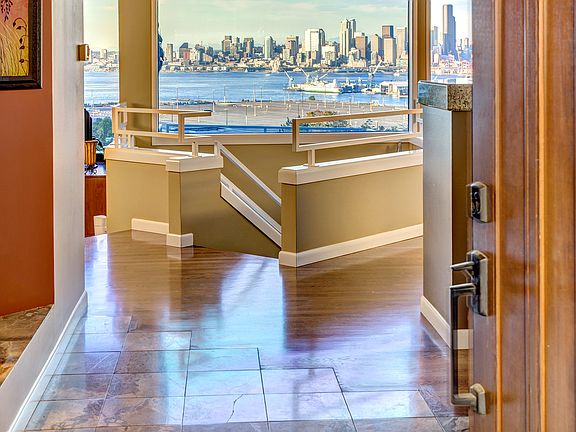 A vacation at home. Escape the city to the charm of West Seattle's pictographic community lane. Tiers of views at all turns... sound, mountain, toney cranes, city spires, majestic liners. Smashing kitchen: white subway tiles, dark wood floors, spotlight island with guest cook stations, giant burst of flowers. Private outdoor dining cabaret (café lighting). Open plan allows interflow of chatting. Master shower with window! Tinted ripples on the bay. Moonlight stars. Fitness-1st room. Pristine! Wow!